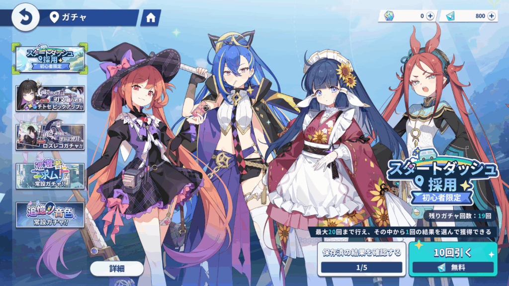 リリースしたばかりのため、どの子が強いなどが分からない状況なのと、スタートダッシュ系で手に入るキャラは今後一番弱い星5カードになる可能性が高いと考えます。