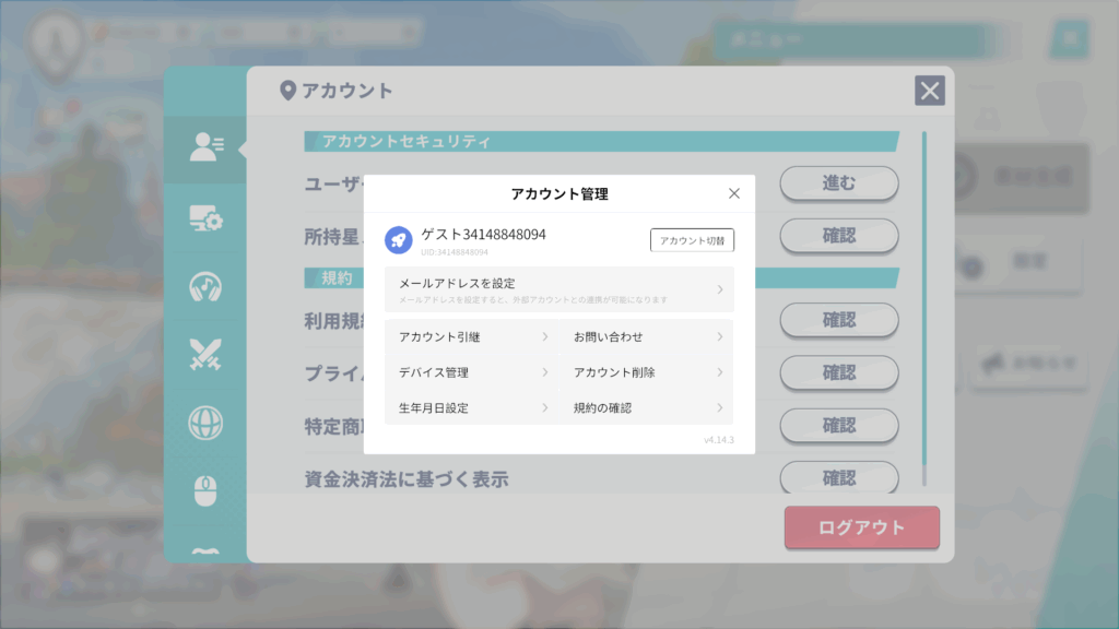 好みのキャラが手に入らず、リセマラしたい場合はリセットの手順に進んでください。