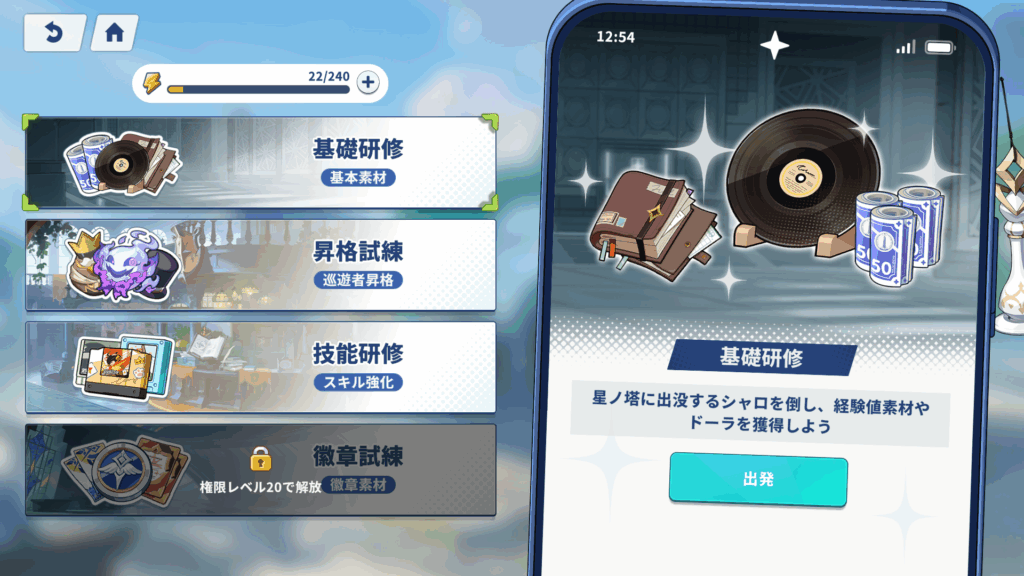 試練や研修をクリアすることで経験値が獲得できます。