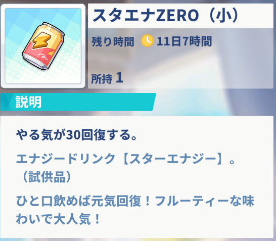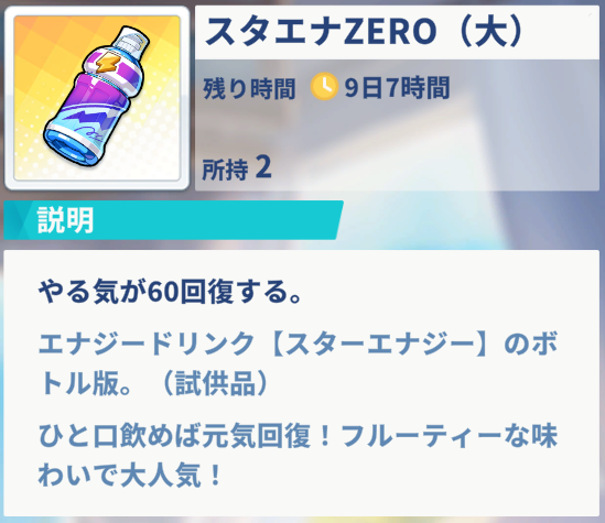 現在、上記2種類のやる気回復アイテムがあり、使用期限があるものは都度使ってしまうのが良いと考えます。