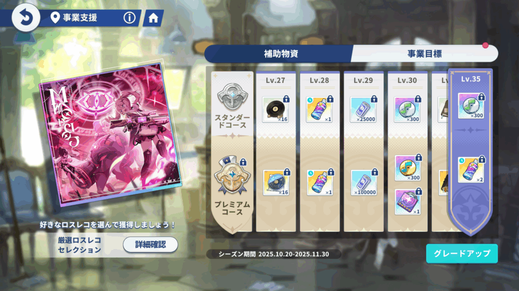 事業支援の右下「グレードアップ」から「ミラクルコース」を購入しましょう。
